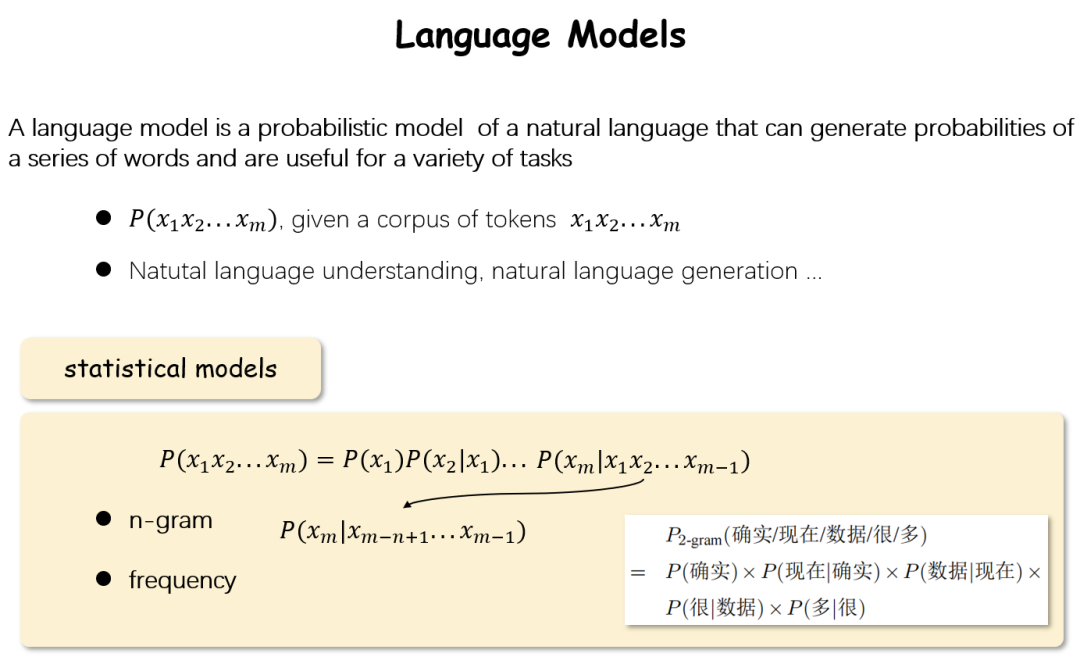 說(shuō)到LLM就不得不提LM(language model語(yǔ)言模型)。語(yǔ)言模型是這樣一個(gè)模型:對(duì)于一句話(由詞組成的序列),它能夠計(jì)算出這句話出現(xiàn)的概率。為了讓模型給出這樣的概率P,簡(jiǎn)單的方法就是將其用概率論中的方法進(jìn)行展開,這樣只要想辦法得到每一個(gè)P(xm|x1x2...xm-1)即可。這樣從另一個(gè)角度來(lái)看,如果我們可以找到一個(gè)模型:它能夠計(jì)算P(xm|x1x2...xm-1),那么它就是一個(gè)語(yǔ)言模型。