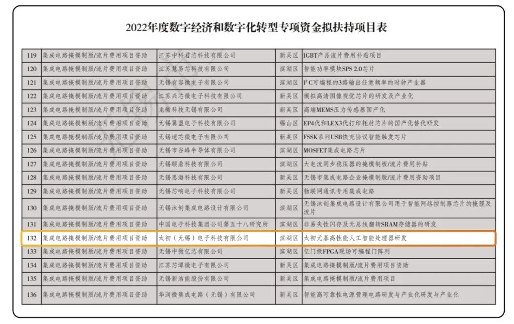 太初元碁入選2022年無(wú)錫市數(shù)字經(jīng)濟(jì)和數(shù)字化轉(zhuǎn)型發(fā)展資金擬扶持項(xiàng)目